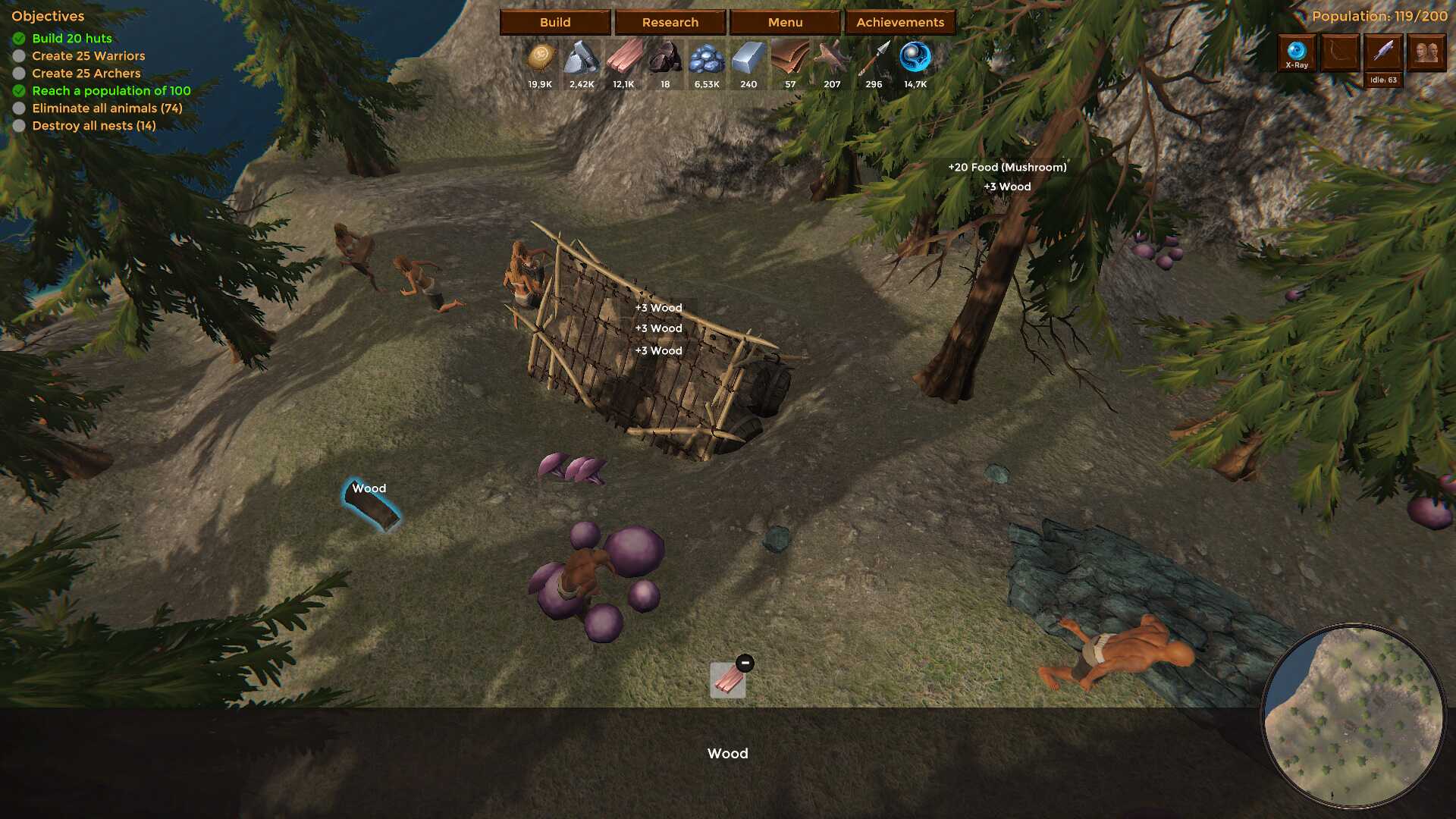 Take control of a group of villagers and lead them in a top-down perspective to: