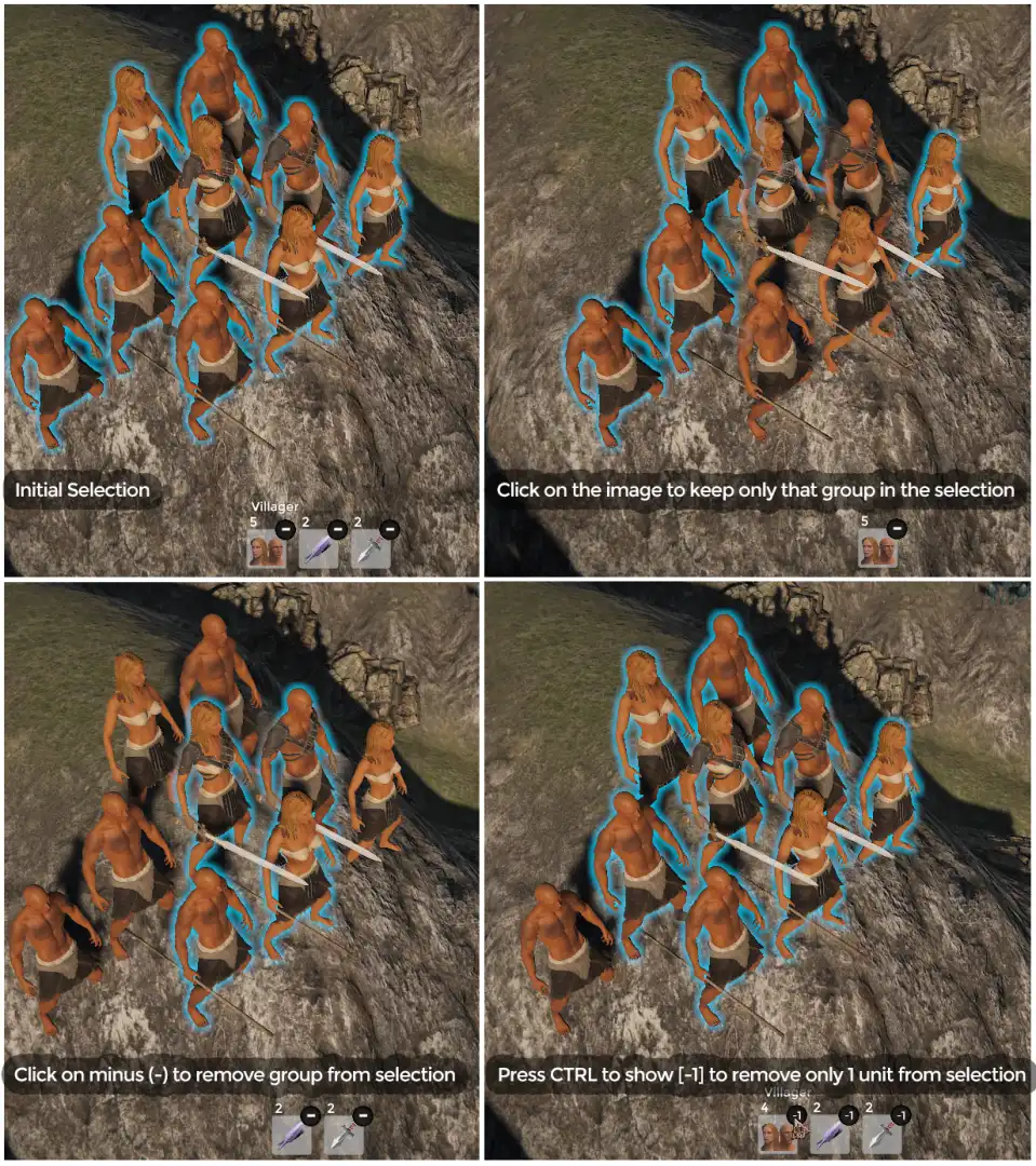 | Deselect individual units from group | Hold Left CTRL |